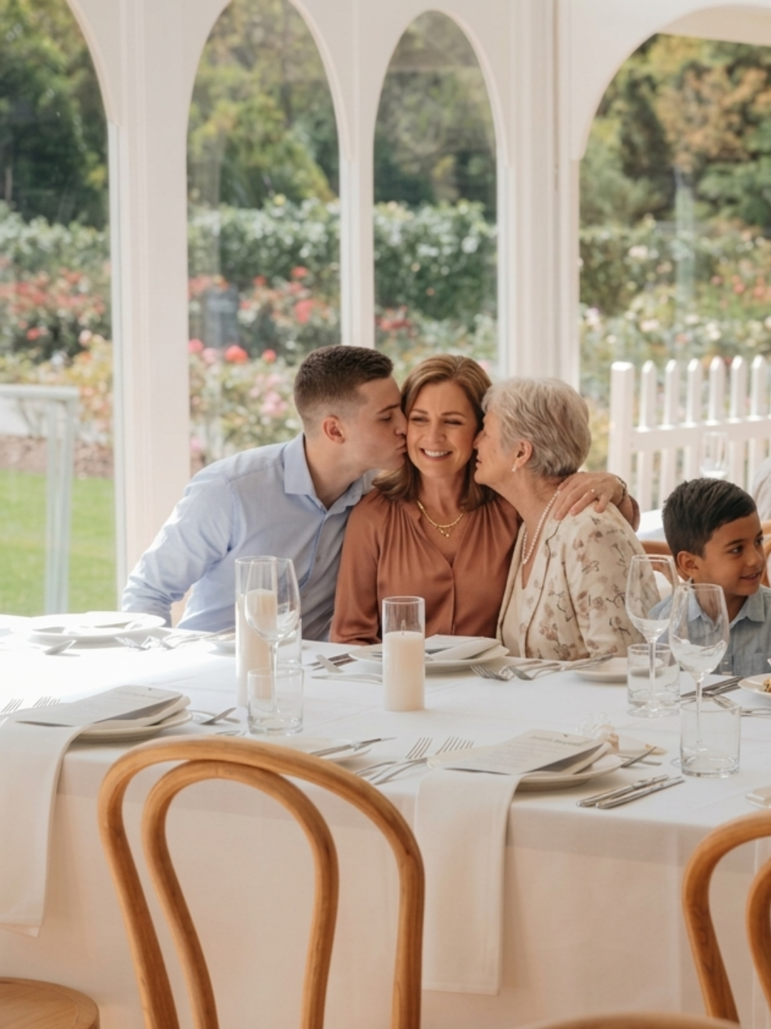 Rose Garden Pavilion: an elegant, light-filled marquee set within the Adelaide Botanic Garden, inspired by the seasonal flavours of Botanic Lodge and designed for a refined long lunch surrounded by nature.